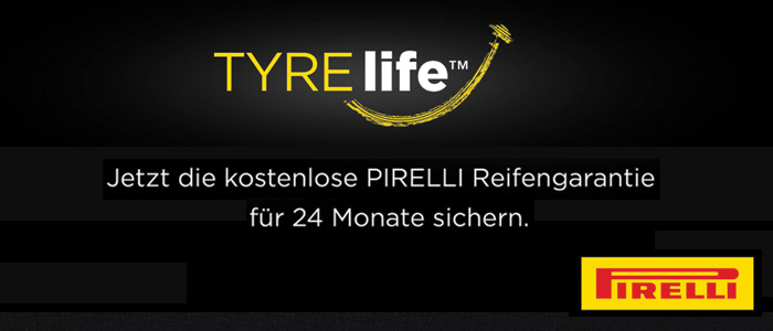Wird ein Reifen aus dem PIRELLI Reifensortiment, der für TYRELIFE™ registriert wurde, innerhalb der ersten 24 Monate nach Kaufdatum und mit mehr als 4 mm Restprofiltiefe beschädigt, so erhalten Sie beim Erwerb eines PIRELLI Ersatzreifens bis zu 100 % des Kaufpreises erstattet. Die Reifengarantie wird gewährt, wenn mindestens zwei Pirelli Sommerreifen, Winterreifen oder Ganzjahresreifen in 17 Zoll und größer erworben wurden.*